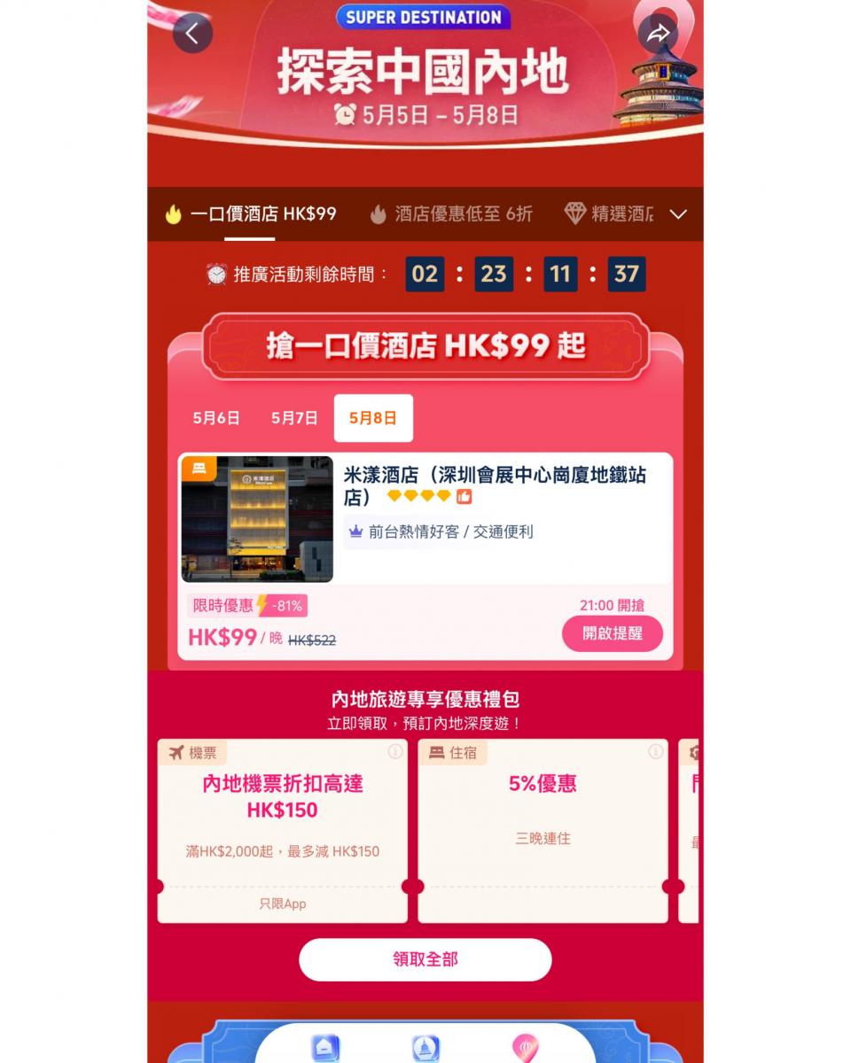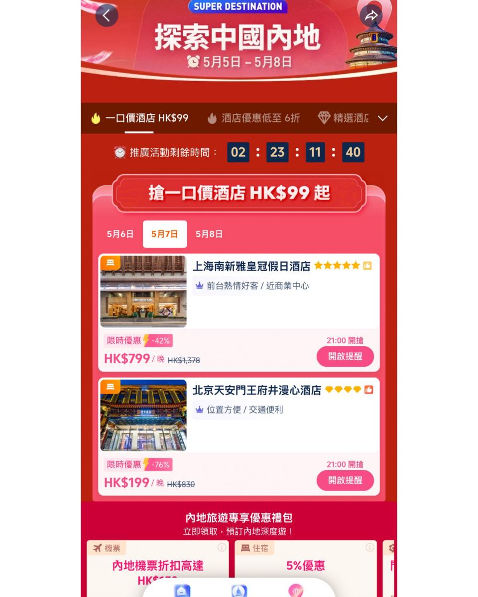 仲有內地旅遊專享優惠禮包🎁等你拎😍(包括:門票🎫/體驗優惠、高鐵🚅、火車票、住宿及🚘機場接送等等)